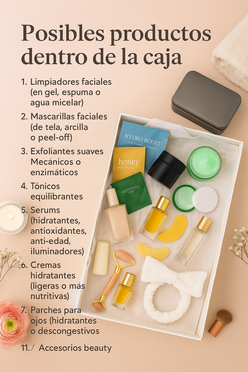 Cada caja incluye productos de skincare seleccionados cuidadosamente para adaptarse a todo tipo de piel.